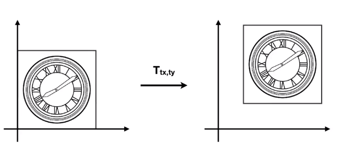 ⎣⎡x′y′w′⎦⎤=⎣⎡100010txty1⎦⎤⋅⎣⎡xy1⎦⎤=⎣⎡x+txy+ty1⎦⎤