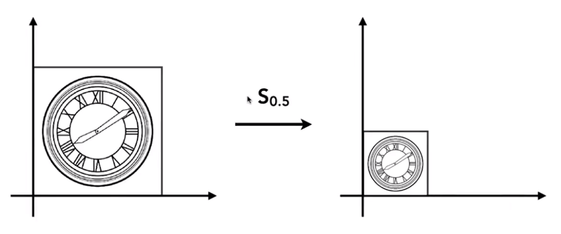Scale(sx,sy,sz)=⎣⎢⎢⎡sx0000sy0000sz00001⎦⎥⎥⎤