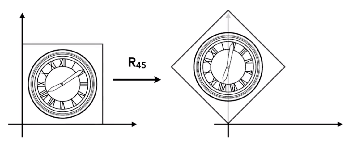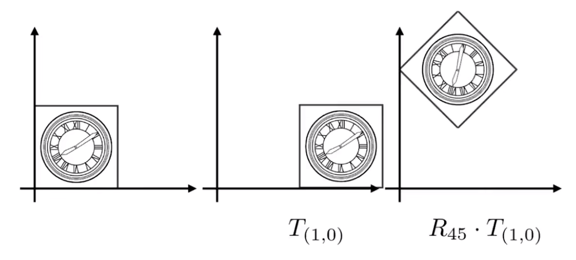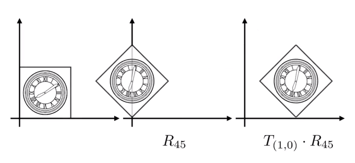 ⎣⎡x′y′1⎦⎤=R45⋅T(1,0)⋅⎣⎡xy1⎦⎤